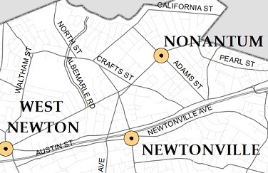 Description: Village centers for the City of Newton, MA. There are no village boundaries in Newton, they do not serve any administrative function. Some villages have mroe clearly defined centers than others. These locations are the best approximations of the centers.